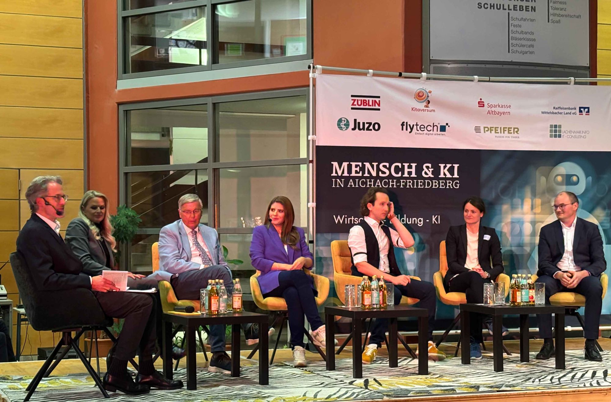 Mit rund 250 Besucherinnen und Besuchern stieß unsere Veranstaltung „Mensch & KI – Wirtschaft und Bildung im Zeitalter von Künstlicher Intelligenz“ am 21. November 2025 in der Wittelsbacher Realschule Aichach auf großes Interesse. Vertreterinnen und Vertreter aus Wirtschaft, Bildung, Politik und Gesellschaft nutzten die Gelegenheit zum Austausch über Chancen, Herausforderungen und Verantwortung im Umgang mit Künstlicher Intelligenz.