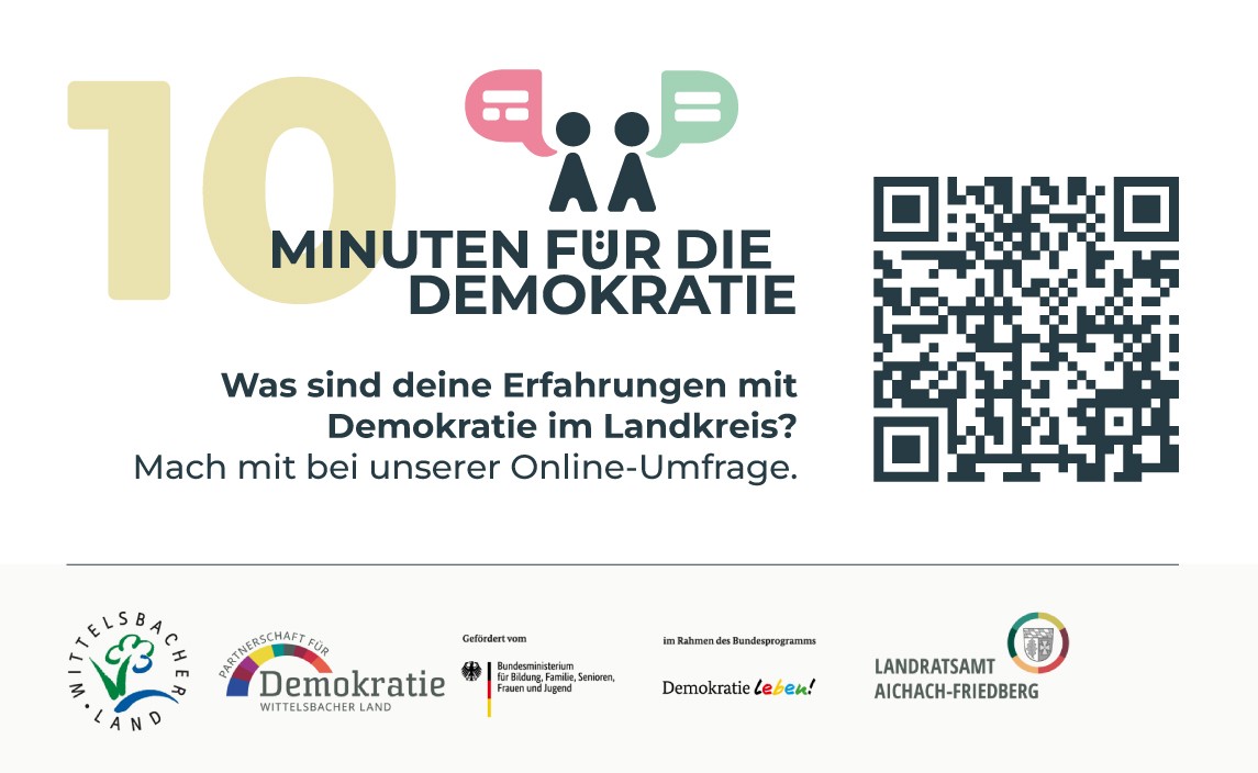 Seit Anfang des Jahres 2025 setzen wir im Wittelsbacher Land das Bundesprogramm „Demokratie leben!“ um. Es hat zum Ziel, unsere demokratischen Strukturen im Landkreis zu stärken sowie Teilhabe und Engagement von Bürgerinnen und Bürgern, Jugendlichen, Vereinen und Gruppen zu unterstützen. Gemeinsam wollen wir Projekte umsetzen, die sich gegen Rassismus und Ausgrenzung richten sowie eine vielfältige und lebendige Zivilgesellschaft fördern.